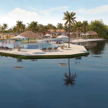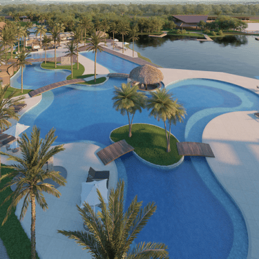 Segurança e [RE] Equilíbrio com a Natureza | Complexo de Piscinas, Lago e Prainha Natural, Restaurante Flutuante